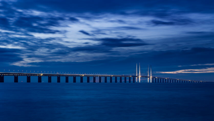 Eines imposantesten europäischen Brückenbauwerke der letzten Jahrzehnte ist die Öresundbrücke zwischen Dänemark und Schweden. Die Öresundquerung beginnt an der dänischen Küste mit einem 3,5 km langen Tunnel, verläuft dann über die künstliche Insel Peberholm und mündet schließlich in der knapp 8 km langen Brücke, die bis zur schwedischen Küste reicht. Seit der Eröffnung vor 17 Jahren haben rund 100 Millionen Fahrzeuge die Brücke passiert.