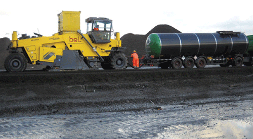 The project was carried out in various phases between December 2011 and June 2012. Around 1500t of foundation material was processed every day; and in total, some 1600t of Nyfoam bitumen was used.