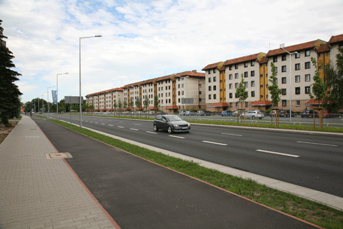 ZADANIE Biegnąca wzdłuż stadionu piłkarskiego dwujezdniowa ulica łącząca ul. Grunwaldzką z ulicą Bukowską i parking przed stadionem