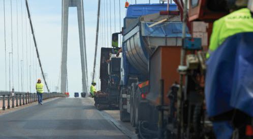 Även kvalitetskraven har varit hårda. Förutom att värma upp ytan till 70 grader innan beläggningen kom på plats, för att säkerställa bra vidhäftning mot gjutasfalten, har man använt självklistrande läggare. Dessutom var man tvungen att använda statiska vältar eftersom brokonstruktionen kan ta skada av kraftiga vibrationer.